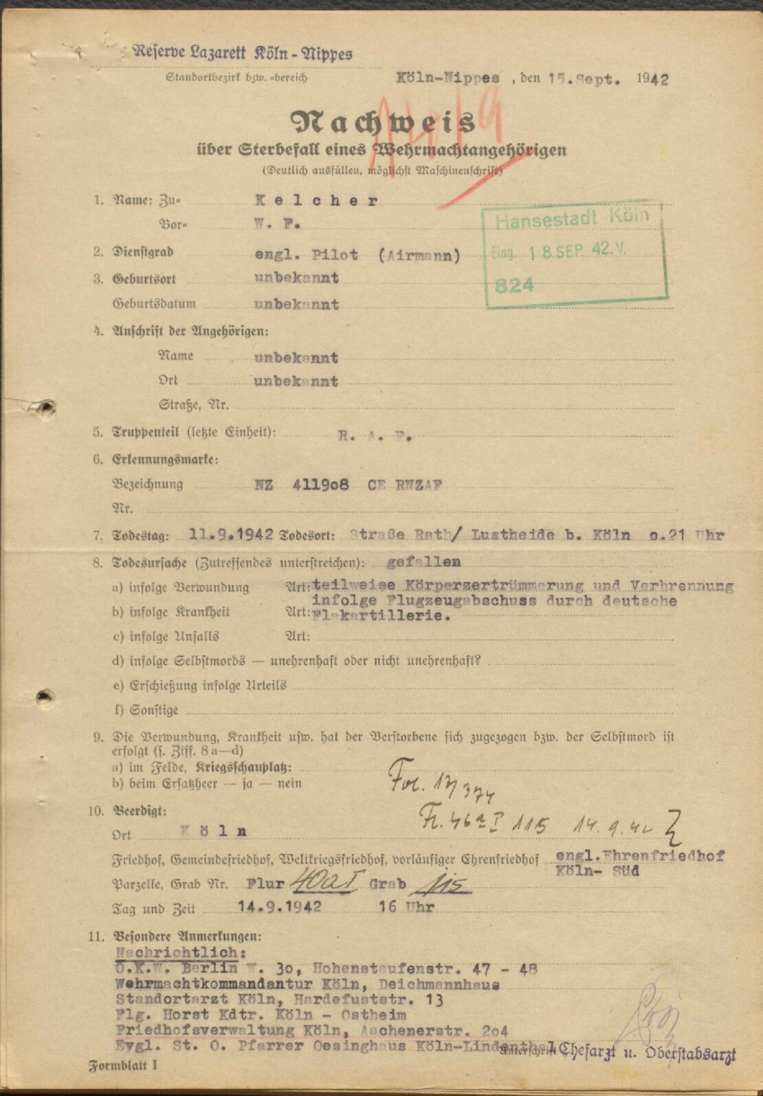 Alle Besatzungsmitglieder, darunter vier neuseeländische Soldaten, kamen bei dem Absturz ums Leben und wurden auf dem Kölner Südfriedhof bestattet.