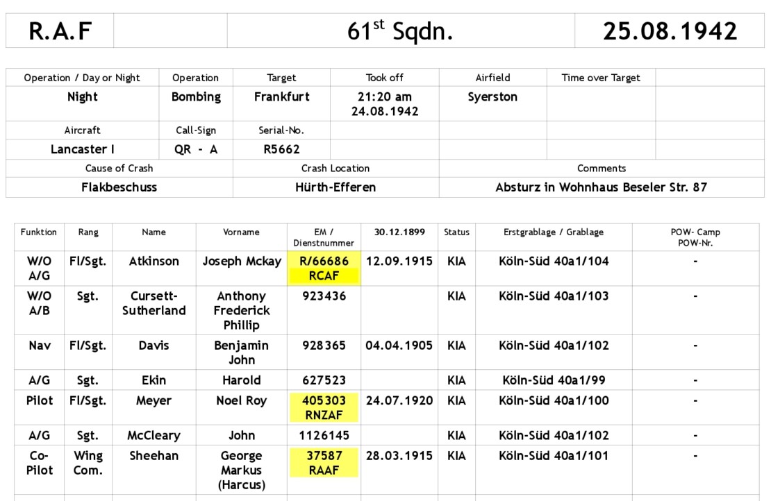 Erst am 06. August 1942, also 19 Tagevor dem Absturz, hatte er in England die 21jährige Sheila Isabel Ina Annesley geheiratet.
