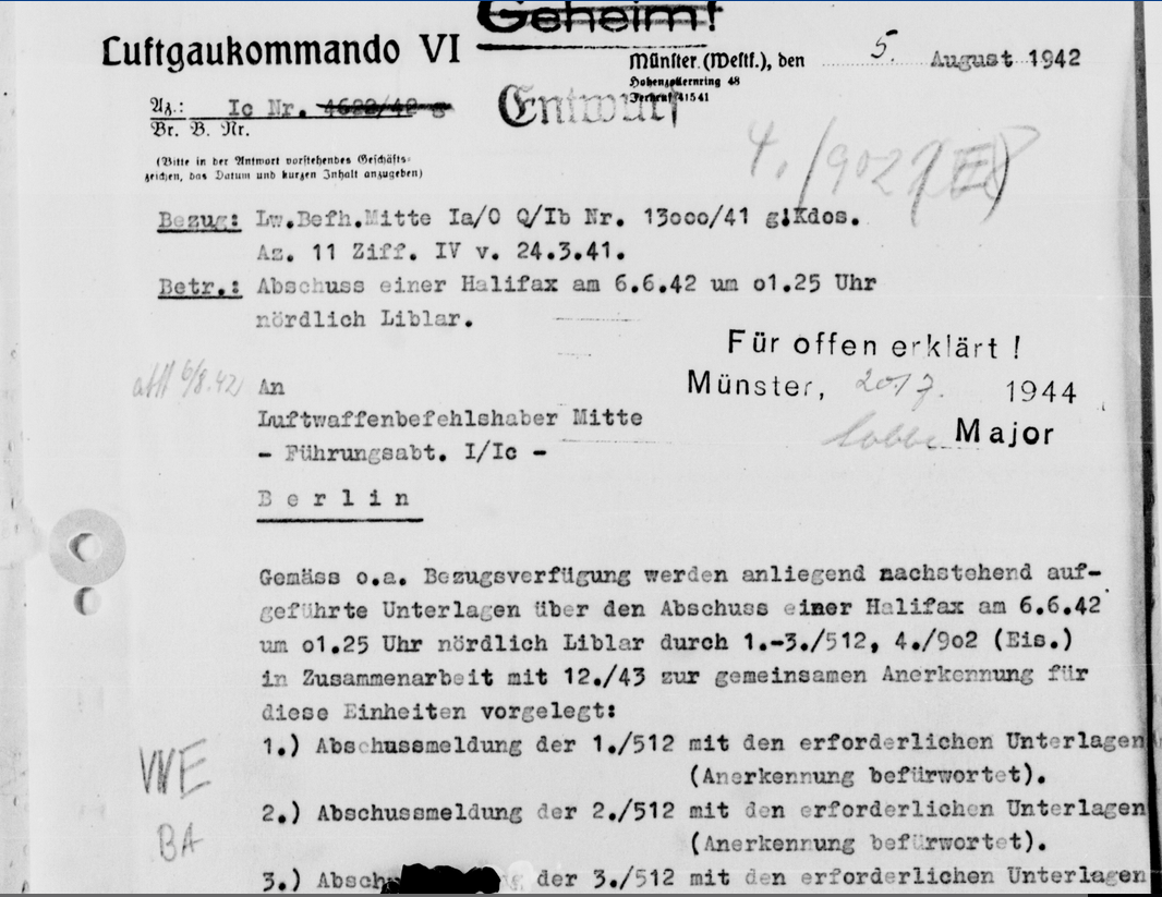 Der Bericht des Luftgaukommandos VI zum Abschuss der Halifax am 06.06.1942
