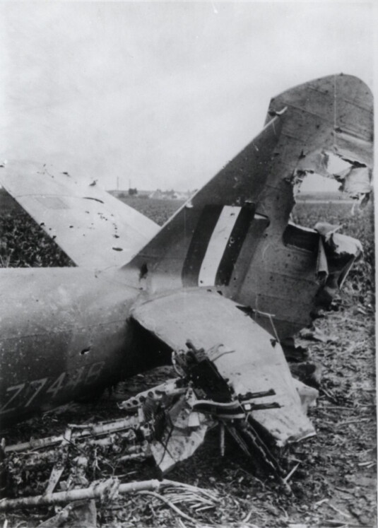 Beim Angriff auf die Kohlekraftwerk FORTUNA in Knapsack wurde die Blenheim Z7448 beim Zielanflug von der Flak getroffen und stürzte in Hücheln in der Nähe des "Baumannshof" in freiem Feld ab.